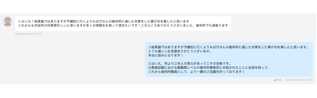 実際に当方が提供している各種サービスをご利用いただいた受験生の方からのリアルな声をいくつか参考までに、掲載いたします。